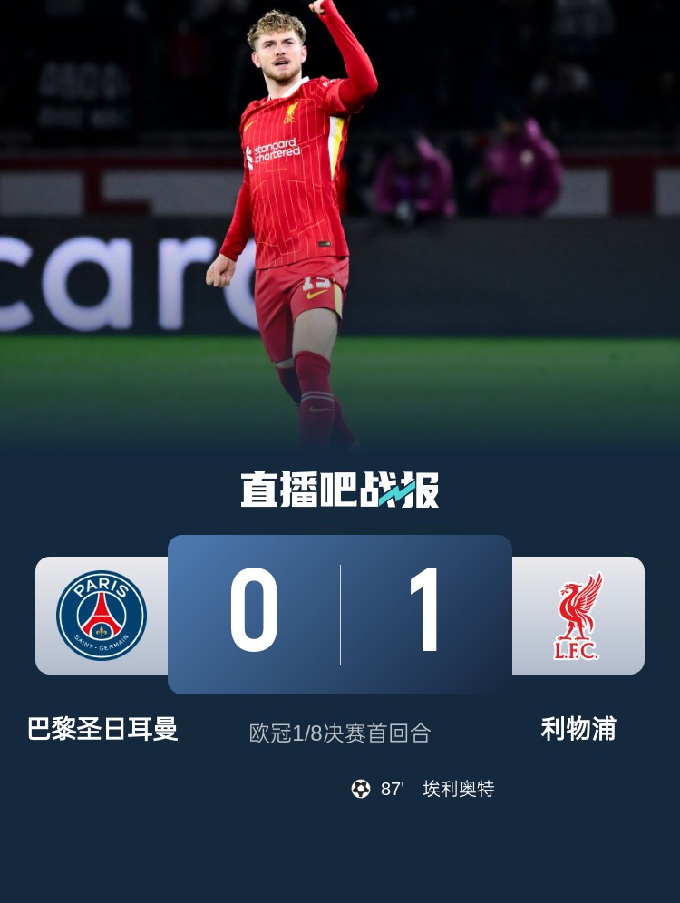 歐冠1/8決賽首回合,巴黎主場0-1遭利物浦絕殺,巴黎全場27次攻門一無所獲,利物浦1腳射正就進球。