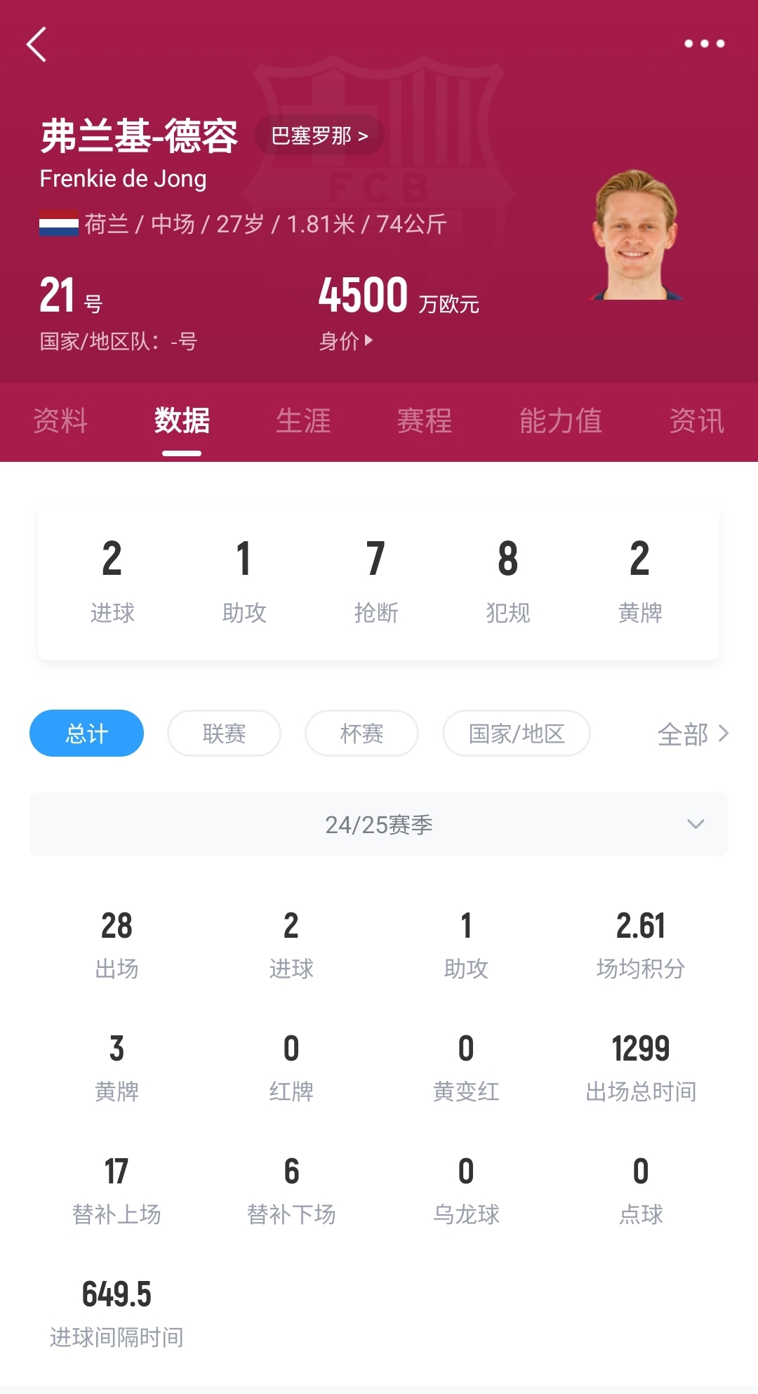 2025-03-06 22:43:39年薪1900萬歐!每體:巴薩向德容提供3年新合同 延期支付工資作廢
