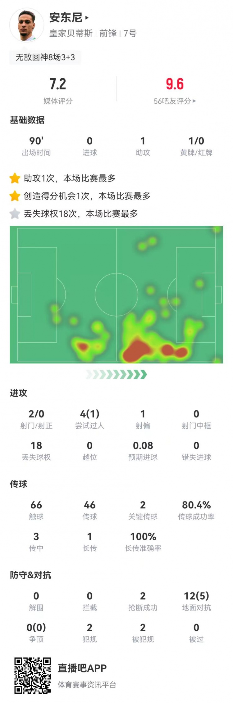 2025-03-07 06:43:08安東尼本場1助攻2關鍵傳球 12對抗5成功+18丟失球權 2搶斷2造犯規