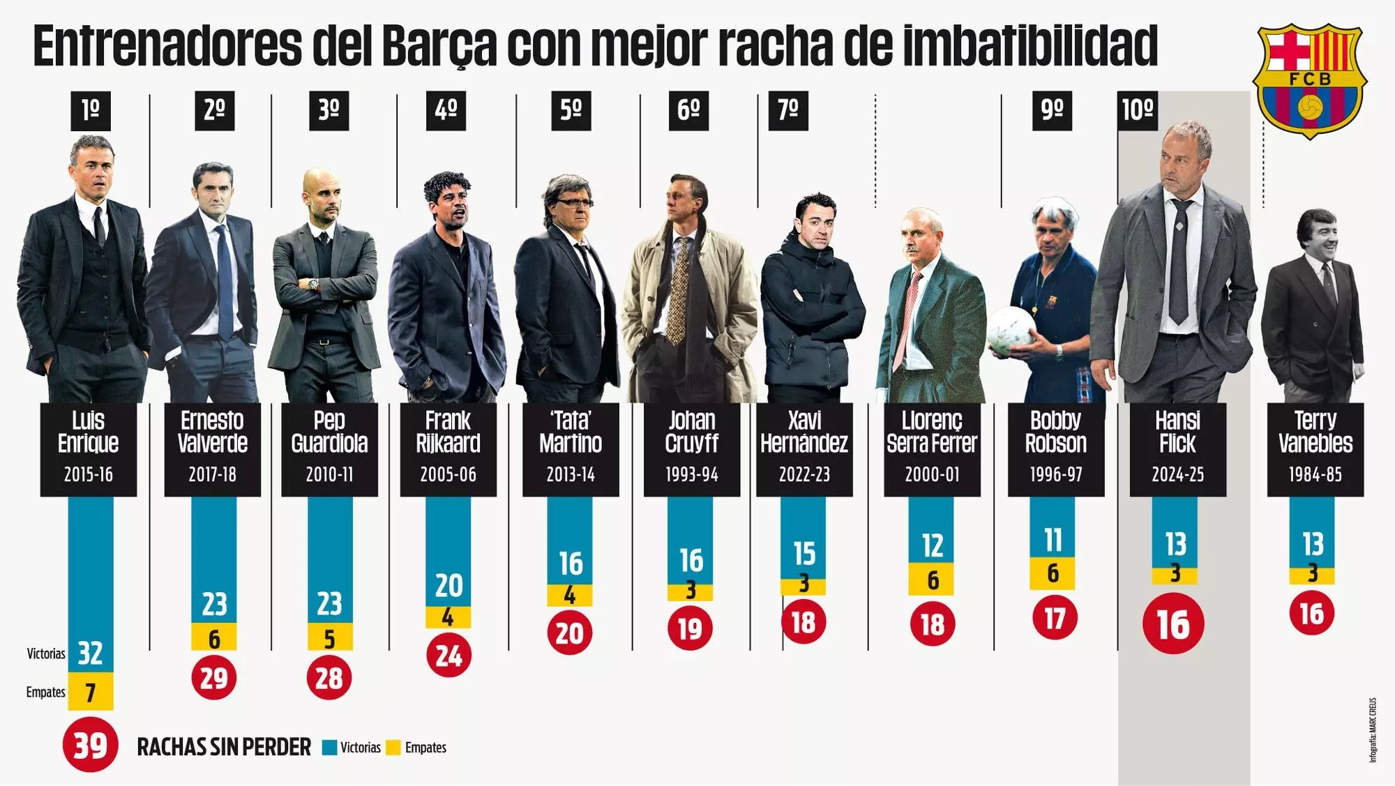 2025-03-07 14:39:33弗里克目前率巴薩連續(xù)16場不敗排隊史第10,第1是恩里克的39場