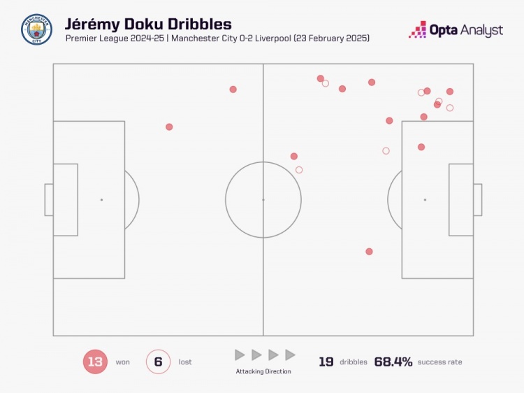 2025-02-24 15:04:49多庫本場19次嘗試過人13次成功,均創(chuàng)造本賽季英超的紀錄