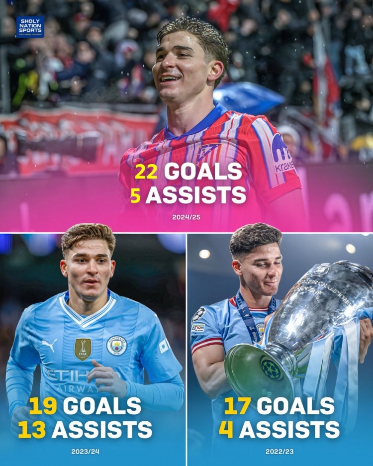 2024年10月7日,馬德里競技做客挑戰皇家社會,阿爾瓦雷斯開場50秒便完成閃擊破門,此役成為其西甲生涯的分水嶺。在賽季初的10場比賽中,阿爾瓦雷斯只有2球入賬,鋪天蓋地的“水貨”罵名幾乎淹沒了他的社交媒體賬號。以造訪阿諾埃塔為起點,小蜘蛛開啟了一輪31場20球的收割之旅,馬競以一波12連勝進入西甲爭冠集團,老東家曼城卻在同時期輸掉14場比賽,昔日的冠軍圣體蛻進階為玄學大師。